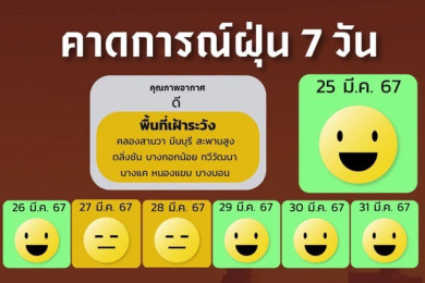เปิด 9 พื้นที่กทม.เสี่ยงค่า PM2.5 ติดสีเหลืองพรุ่งนี้ คาดฝุ่น 7 วันในกทม.คุณภาพอากาศดี