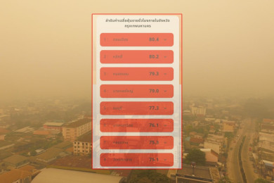 เช้านี้ พบค่าฝุ่น PM 2.5 ถึง 21 จว.เริ่มมีผลต่อสุขภาพ สูงสุด "สมุทรสาคร" 51.7 ไมโครกรัม