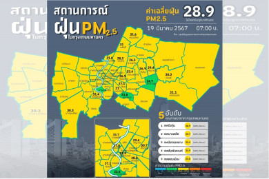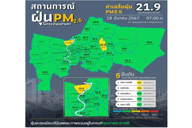 เช้านี้พบ 9 จังหวัด เหนือ- อีสาน ยังจมฝุ่น PM2.5 มีผลกระทบต่อสุขภาพ กทม.คุณภาพอากาศปานกลางไปจนถึงดี