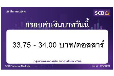 ธนาคารไทยพาณิชย์ ประเมินค่าเงินบาทวันนี้เคลื่อนไหวในกรอบ 33.70-33.90 บาท/ดอลลาร์ ผ่อนคลายมาตรการ LTV