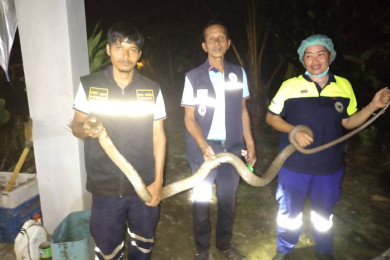 จงอางตัวใหญ่ยาว 3.50 เมตร กินงูสิงหางลาย คนกรีดยางผวา แจ้งทีมอสรพิษวิทยาภาคใต้มาจับ แห่ตีเลขเด็ด