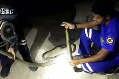 ผวา! พบจงอางยาวเกือบ 4 เมตร กลางย่านการค้าหาดเขาหลัก กู้ภัยจับส่งอุทยานฯปล่อยคืนสู่ป่า