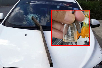สาวใหญ่เล่าวินาที แท่งเหล็กพุ่งทะลุกระจกรถหวิดเสียบหน้าอก เชื่อบารมี “หลวงพ่อทวด” จึงรอด