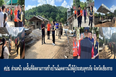 ศปช. ส่วนหน้า ลงพื้นที่ติดตามการสร้างบ้านน็อคดาวน์ให้ผู้ประสบอุทกภัย จังหวัดเชียงราย