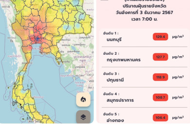 นครพนม -สกลนคร -มุกดาหาร ค่าฝุ่นสูงมีผลต่อสุขภาพ ด้าน กทม. เริ่มมีผลกระทบต่อสุขภาพถึง 49 เขต