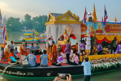 134 ปี เสียงประทัดดังกึกก้องสองฝั่งแม่น้ำบางประกงรับขบวนเรือหลวงพ่อโสธรแห่ทางน้ำล่องลงทางทิศใต้อ.บางปะกง