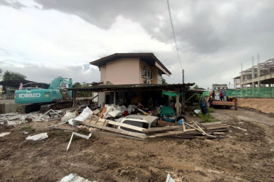 ชลประทานตราด สละที่ดินทุบบ้านคนงาน ขุดร่องเปิดทางระบายน้ำท่วมขัง