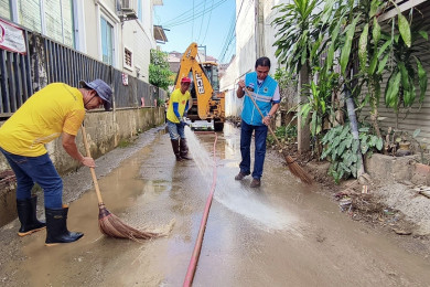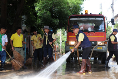 ผอ.ชป.เชียงใหม่ นำรถบรรทุกน้ำ พร้อม จนท.เร่งทำความสะอาดฟื้นฟูชุมชนตำบลช้างคลาน