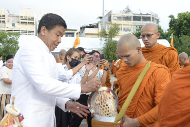 ผู้ว่าฯ กทม.นำพุทธศาสนิกชนทำบุญตักบาตรพระสงฆ์ 67 รูป ในวันวิสาขบูชา