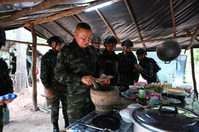 “แม่ทัพภาคที่ 2” เยี่ยมหน่วยฐานปฏิบัติการชายแดน พื้นที่ กกล.สุรนารี โชว์ฝีมือตำส้มตำ-ไข่เจียว