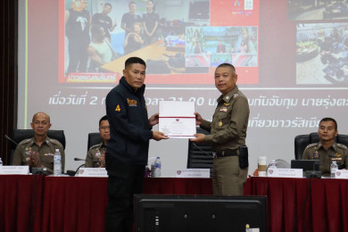 ผู้การชลบุรี มอบใบประกาศเชิดชูเกียรติ 7 นาย ตร.ชุดสืบบางละมุง จับโจรเสียพนันชิงทรัพย์แหม่มสาวหมีขาว ได้ทันควัน