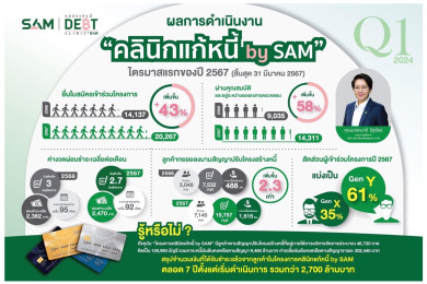 “คลินิกแก้หนี้ by SAM” ปิด Q1 สวย ลดหนี้ครัวเรือน ยอดใบสมัครไตรมาสแรกพุ่ง คงดอกเบี้ยต่ำ 3-5% ผ่อนนานสุดถึง 10 ปี
