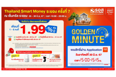 ธอส.จัดโปรโมชันสินเชื่อบ้านดอกเบี้ยต่ำ 6 เดือนแรกเพียง 1.99% ต่อปีร่วมงาน “Thailand Smart Money ระยอง ครั้งที่ 7” 28-30 มิ.ย.67