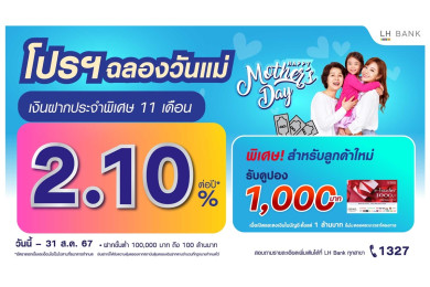 LH Bank ออกแคมเปญเงินฝากประจำพิเศษ 11 เดือน รับดอกเบี้ยสูงโดนใจ 2.10% ต่อปี พร้อมโปรโมชันพิเศษสำหรับลูกค้าใหม่ฉลองวันแม่