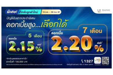 "LH Bank" ออกแคมเปญเงินฝากประจำพิเศษระยะสั้นสำหรับลูกค้าใหม่ รับดอกเบี้ยสูงสุด 2.20% ต่อปี