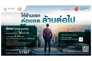 LH Bank ขยายความคุ้มค่าให้ล้านแรกต่อยอดล้านต่อไป รับ ดบ.สูงสุด 5.55% ต่อปี เฉพาะ 1 แสนบาทสุดท้ายของแต่ละล้าน สูงสุด 4 ล้านบาท