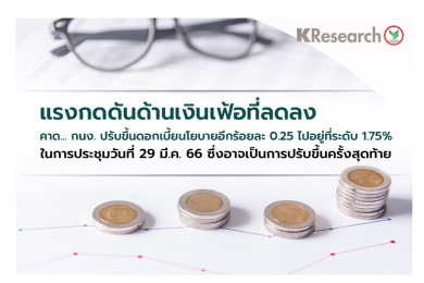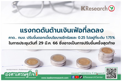 KResearchCenter คาด กนง.ขยับดอกเบี้ย 0.25% แรงกดดันเงินเฟ้อลดลง ย้ำรอบนี้ขาขึ้นครั้งสุดท้าย