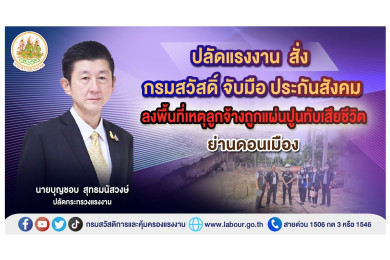 ปลัดแรงงานสั่ง "กรมสวัสดิ์" จับมือ "ประกันสังคม" ลงพื้นที่เหตุลูกจ้างถูกแผ่นปูนทับเสียชีวิตย่านดอนเมือง