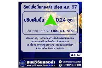 ดัชนีทองคำเดือน พ.ค.ทรงตัวระดับสูง สะท้อนแรงหนุนจากหลายปัจจัยบวก