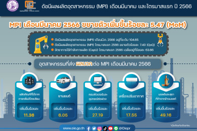 ศก.ฟื้นหนุนดัชนี MPI มี.ค.ขยายตัว 5.47% ท่องเที่ยวในประเทศคึกคักดันความต้องการสินค้าอุตฯเกี่ยวเนื่องเพิ่ม