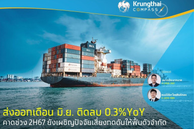 ส่งออกเดือน มิ.ย.ติดลบ 0.3% YoY คาดช่วง 2H67 ยังเผชิญปัจจัยเสี่ยงกดดันให้ฟื้นตัวจำกัด