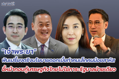 "เจ้าพระยา"ฟันเปรี้ยงตรึงนโยบายดอกเบี้ยทำคนเล็กคนน้อยสาหัส ชี้หน้ากอบกู้เศรษฐกิจไทยไม่ใช่ภาระรัฐบาลฝ่ายเดียว