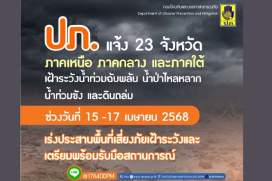 "ปภ." ส่ง Cell Broadcast เตือนดินโคลนถล่ม 13 อำเภอในตากและแม่ฮ่องสอน ช่วง 21-24 ก.ค.