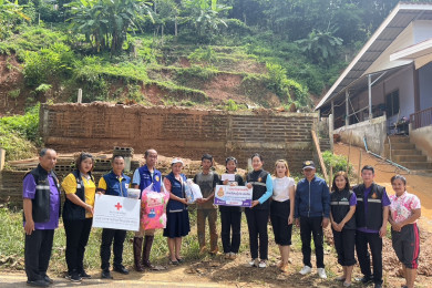 เหล่ากาชาดแม่ฮ่องสอน รุดเยี่ยมให้กำลังใจราษฎรถูกน้ำป่าไหลหลาก-ดินโคลนถล่มใส่บ้าน