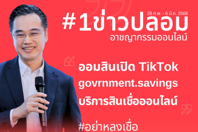 ดีอี เตือน “โจรออนไลน์” สร้างบัญชีปลอม “ออมสิน”เปิดบัญชี TikTok govrnment.savings ให้บริการสินเชื่อออนไลน์
