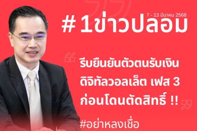 “ดีอี” เตือน “มิจฉาชีพ” ปล่อยข่าวปลอม “รีบยืนยันตัวตนรับเงินดิจิทัลวอลเล็ตเฟส 3 ก่อนโดนตัดสิทธิ์”