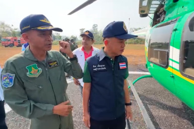 ผู้ว่าฯตราดพร้อมนายอำเภอเมืองขึ้นฮ.ตรวจพื้นที่ไฟไหม้ชายแดนหลังลุกลาม พบค่าPM2.5 ขึ้นสูงติดอันดับประเทศ