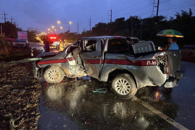 ตำรวจภาค 2 ฉายเดียวใช้รถตราโล่ขนบุหรี่เถื่อนเต็มคัน แต่รถเสียหลักลื่นชนไฟฟ้าบาดเจ็บสาหัส
