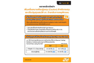 "ตลาดหลักทรัพย์ฯ" เพิ่มเครื่องหมาย C คุมกองทุน-ปรับเกณฑ์ บจ.Resume Trading มีผล 1 ม.ค.68