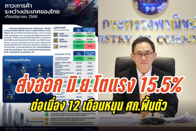 ส่งออกไทยเดือนมิ.ย.68 โตแรง 15.5% ต่อเนื่อง 12 เดือน ครึ่งปีแรกทะยานเกินคาด หนุนเศรษฐกิจฟื้นตัว