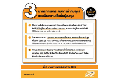 ดึงเชื่อมั่น "ตลาดหลักทรัพย์ฯ" เพิ่ม Auction Matching-Dynamic Price Band-Minimum Resting Time ดีเดย์ 2 ก.ย.67