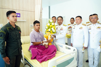 ผู้ว่าฯยะลา เชิญดอกไม้และตะกร้าสิ่งของพระราชทาน มอบให้เจ้าหน้าที่ที่ได้บาดเจ็บจากเหตุคนร้ายลอบยิง