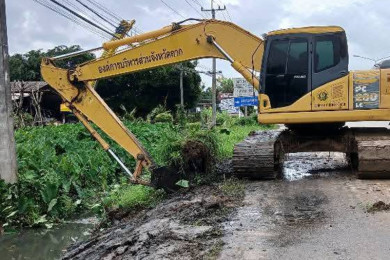 อบจ.ตาก-ทน.แม่สอด บูรณาการขุดลอกเส้นทางระบายน้ำ ป้องกันน้ำท่วมขัง บริเวณสระดอกบัว