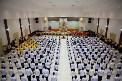 นายอำเภอท่าสองยาง ประธานพิธีถวายเครื่องราชสักการะ วางพานพุ่ม และพิธีจุดเทียนถวายพระพรชัยมงคล