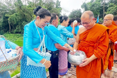 ชาวตำบลหมอกจำแป่ ร่วมใจสวมใส่ชุดสีฟ้า ทำบุญตักบาตรถวายเป็นพระราชกุศล เฉลิมพระเกียรติฯ