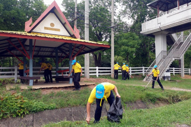 ตร.ทางหลวง ทำความสะอาด ปรับปรุงภูมิทัศน์และเก็บขยะบริเวณศาลาที่พักริมทาง