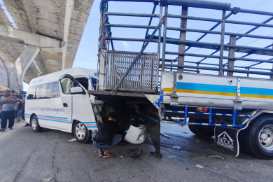 พระราม 2 อีกแล้ว! ความปลอดภัยอยู่ไหน สลิงก่อสร้างร่วงใส่รถเทรลเลอร์ก่อนฟาดใสรถกระบะหน้ายับ