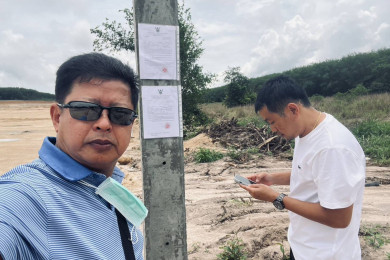 "ระยอง" นำคำสั่งปิดประกาศหน้าที่ดินนายทุนถมดินสูงมิดหลังคาบ้านชั้น 2 ของชาวบ้านให้หยุดขุดถมดิน-สั่งแก้ไขใน 7 วัน