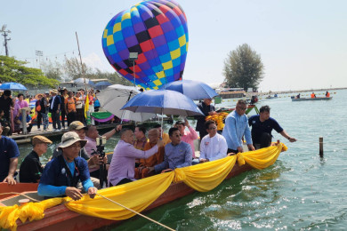 พ่อเมืองระยอง นำชาวบ้านและชาวประมงใน ต.ปากน้ำกระแส อ.แกลง ร่วมลงเรือทอดผ้าป่ากลางลำน้ำ