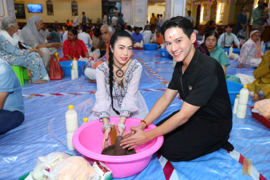 “ทอฝัน-เต้” นักแสดงสายบุญร่วมงาน “มหาศิวะราตรี” ที่วัดเทพมณเฑียร