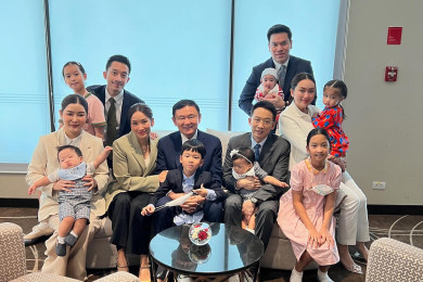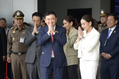"ทักษิณ" ทักทายแกนนำพท. "โอ๊ค-เอม-อุ๊งอิ๊ง" ประกบพ่อไม่ห่าง สวมกอด "ภูมิธรรม-ประเสริฐ" บอกขอบคุณทุกคน