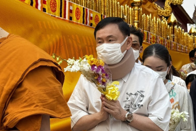"ทักษิณ" ดูโครงการปรับปรุงสระเก็บน้ำหนองเขียว "เจ้าคณะเชียงใหม่" มอบลูกประคำไม้หอมกฤษณา-สมเด็จวัดปากน้ำ ขอให้อยู่กับบ้านเมืองไปชั่วชีวิต