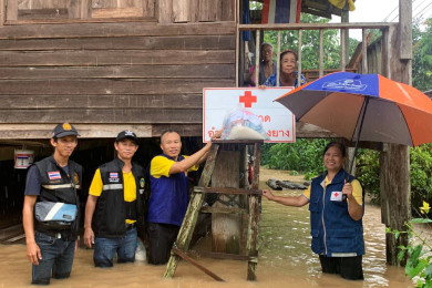 กิ่งกาชาดอำเภอท่าสองยาง ช่วยเหลือประชาชนที่ประสบอุทกภัย น้ำท่วม เขตเทศบาลตำบลแม่ต้าน