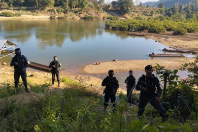 ทหาร-ปกครอง-ตำรวจ ตรวจสอบพื้นที่ริมแม่น้ำเมย อ.ท่าสองยาง จ.ตาก ป้องกันและสกัดกั้นการกระทำผิดกฎหมาย