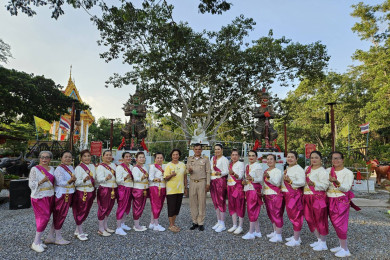 นายหน้าที่ดิน จัดนางรำแห่แก้บนท้าวเวสสุวรรณวัดละโอก ชาวบ้านไม่พลาดขอเลขเด็ดลุ้นรางวัลใหญ่