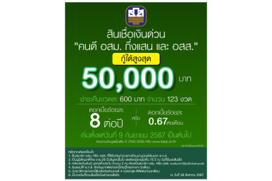 ได้เฮ! 9 เดือน 9 ธ.ก.ส.เพิ่มวงเงินสินเชื่อเงินด่วนคนดีแก่ อสม.และ อสส.ที่มีวินัยการชำระหนี้ วงเงินกู้สูงสุด 50,000 บาทต่อราย